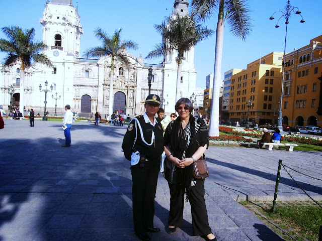 uma senhora e um polícia